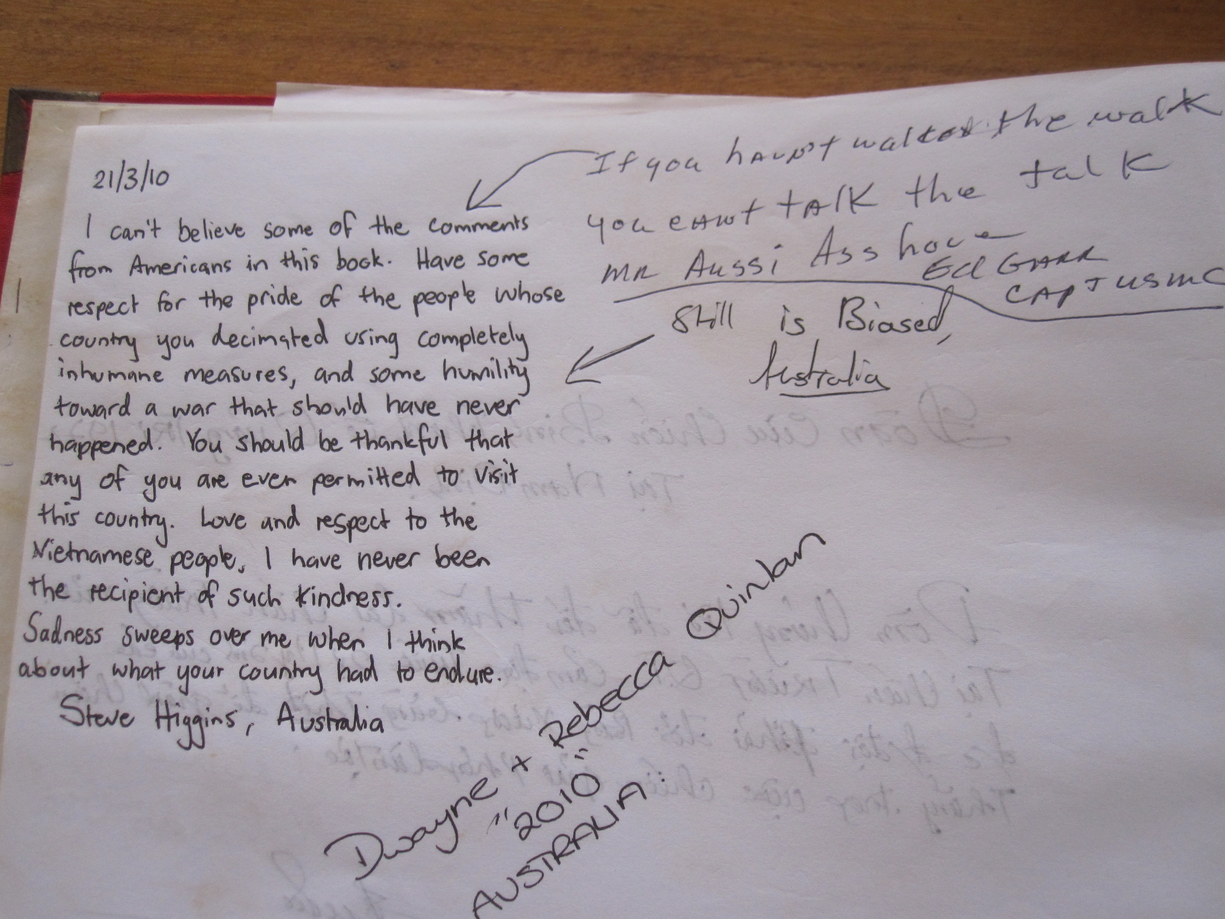 “I can’t believe some of the comments from Americans in this book. Have some respect for the pride of the people whose country you decimated… you should be thankful that any of you are ever permitted to visit this country…” – Steve Higgins, Australia.